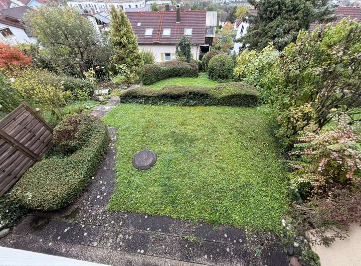 Der angeschlossene Garten ist gepflegt und ist zusätzlich über einen Fußweg mit einigen Stufen von unterhalb des Hauses her zu erreichen.