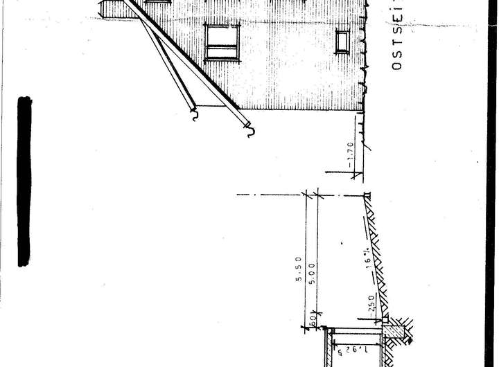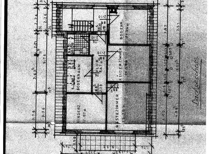 Drempelhöhe ca. 110 cm auf der Südseite (Gaubenseite) und ca. 170 cm auf der Nordseite.