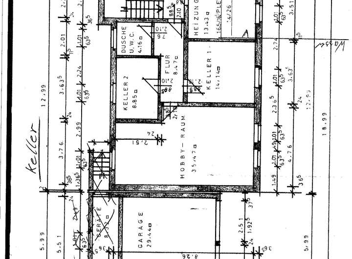 Im Kellergeschoss befindet sich auch ein Heizungs-/Hauswirtschaftsraum (13,43 m2) der separat vom Treppenhaus zugänglich ist.