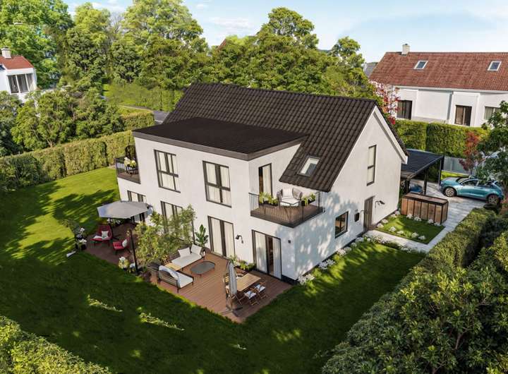 Dieses architektonisch gelungene Neubauprojekt lässt keine Wünsche offen, von der perfekten Raumaufteilung, der hellen Wohnräumen bis hin zum großzügigen Garten.