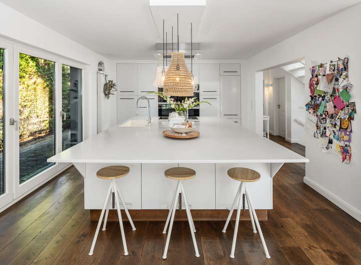 _ die geschmackvolle und großzügige Einbauküche ist offen zum lichtdurchfluteten Wohnbereich gestaltet