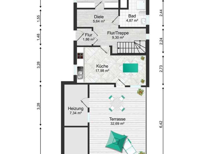 Erdgeschoss mit Nebengelassen