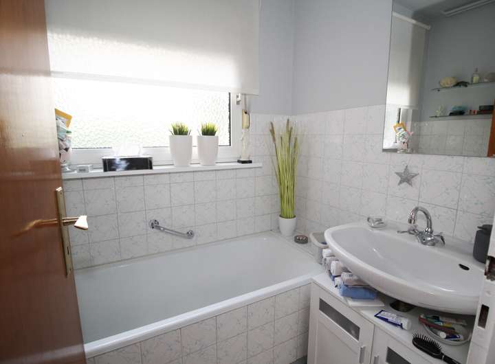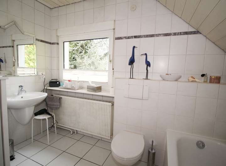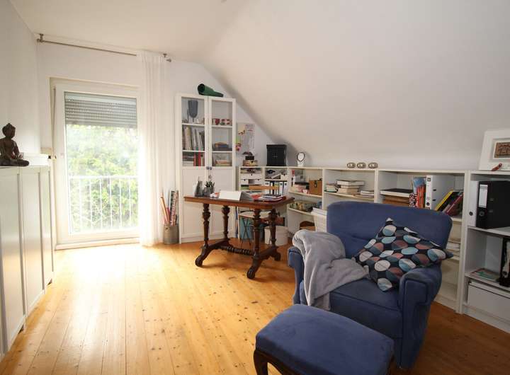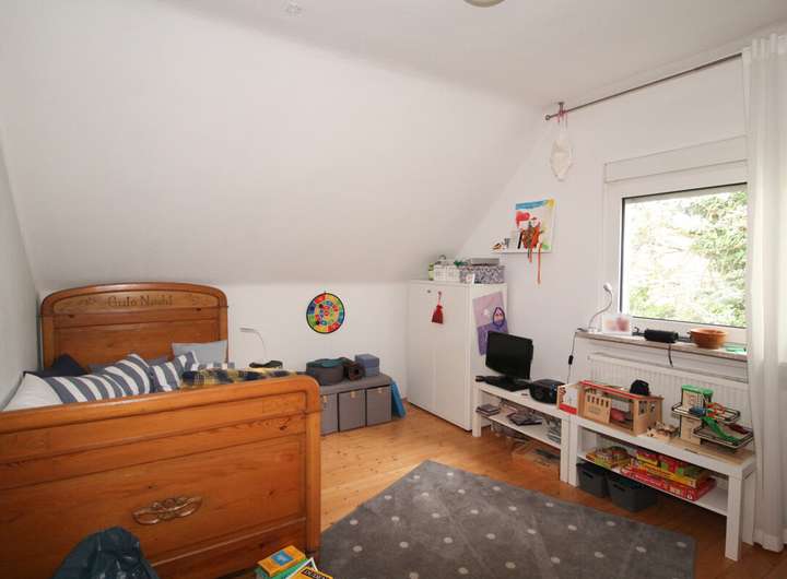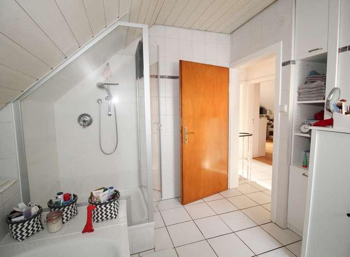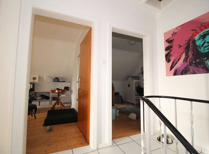 Das Obergeschoss beherbergt drei weitere Zimmer, die sich flexibel als Schlafräume, Kinderzimmer oder Homeoffice nutzen lassen. Das Tageslichtbad mit Wanne und Dusche sorgt für zusätzlichen Komfort.