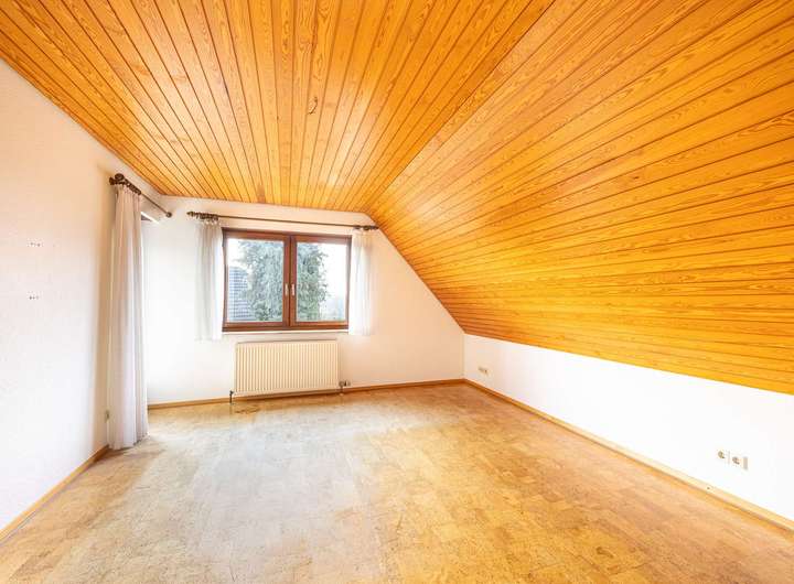 Das Dachgeschoss mit rund 74 m² Wohnfläche beherbergt fünf weitere Zimmer und überzeugt durch seine flexible Raumaufteilung. Das Hauptschlafzimmer sowie ein Kinderzimmer verfügen über Zugang zum Balkon. Ein helles Tageslichtbad sorgt für Komfort im Alltag. Drei weitere Zimmer bieten vielfältige Nutzungsmöglichkeiten – ob als Kinderzimmer, Büro, Hobbyraum oder Ankleidezimmer.