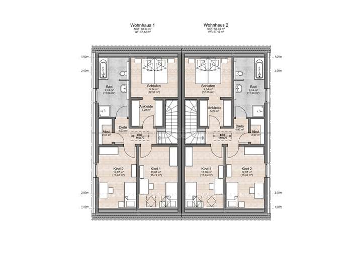 Die Doppelhaushälften auf Basis „Simply Home von Büttner“ bieten auf ca. 123 m² Wohnfläche (Wohn-/Grundfläche: ca. 136 m²) und auf einer Nutzfläche von ca. 52 m² alles, was Paare oder Familien für ein entspanntes Leben brauchen. Im Erdgeschoss bilden Wohnen, Essen und Kochen das Herzstück des Hauses. Ein offener, lichtdurchfluteter Bereich präsentiert sich somit ideal für gemeinsame Stunden und geselliges Beisammensein. Ergänzt wird das Raumangebot durch ein Gäste-WC, ein multifunktionales Arbeits-/Gästezimmer, einen Abstellraum sowie einen Technikraum mit Waschmaschinenanschluss. Im Obergeschoss erwartet euch der private Rückzugsbereich: ein Schlafzimmer mit Ankleide, zwei großzügige Kinderzimmer, ein Abstellraum und ein modernes Bad. Genügend Staufläche ist im darüberliegenden Spitzboden vorhanden. Sonnige Tage, entspannte Abende und unvergessliche Momente können im Garten mit der ganzen Familie genossen werden.