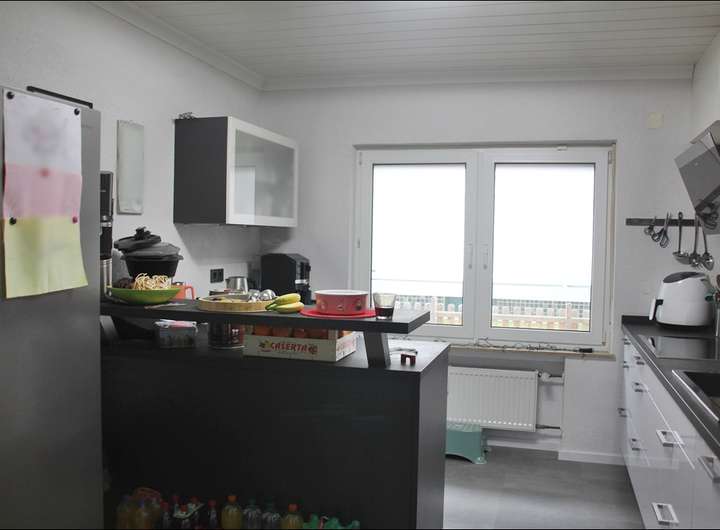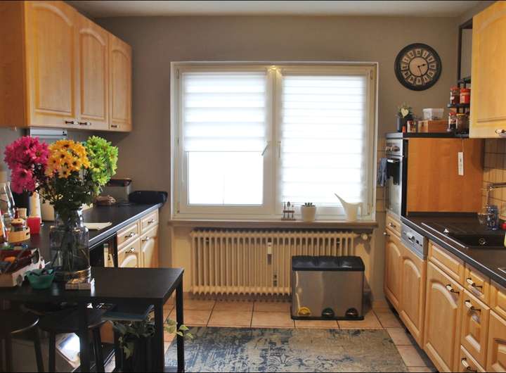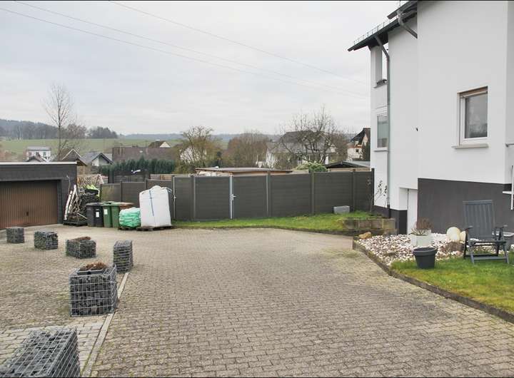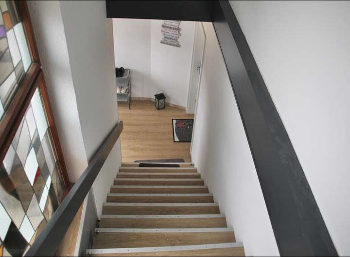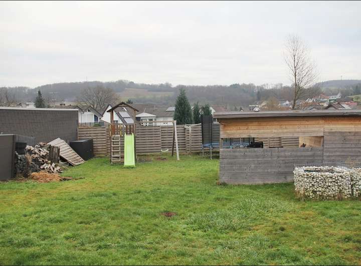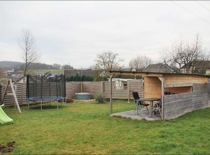 - Obergeschoss: 4 Zimmer, Küche, Bad mit Dusche und Waschmaschinennische, Gäste-WC und Balkon.