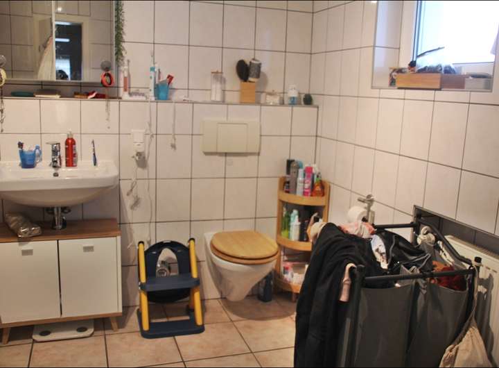 OG: Bad mit WC, Dusche und Waschmaschinennische; Gäste-WC.