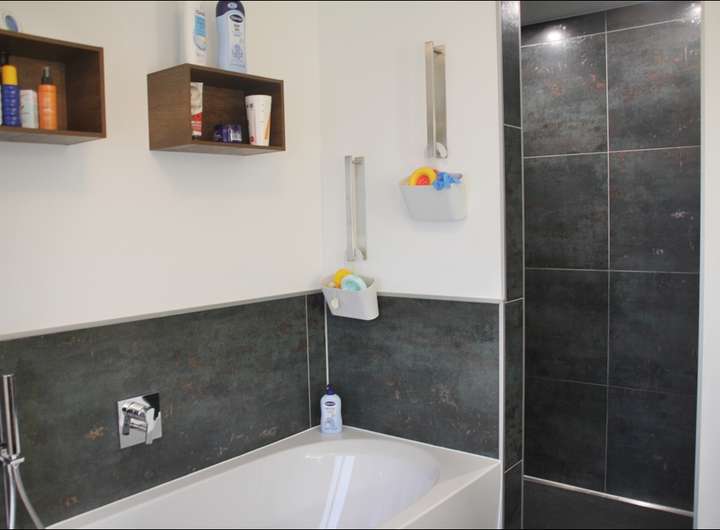 - Erdgeschoss: 4 Zimmer, Küche, Bad mit Wanne & ebenerdiger Dusche, Gäste-WC, Terrasse und Garten.