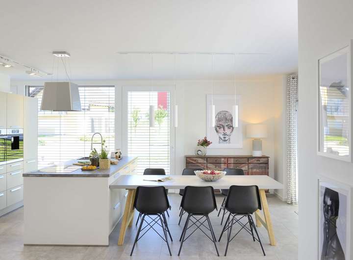 In diesem Haus erwartet Sie eine geschickte Raumaufteilung, die Funktionalität und Gemütlichkeit miteinander verbindet. Die geräumige Küche bietet Ihnen ausreichend Platz für kulinarische Kreationen. Das Esszimmer lädt Sie ein, gemeinsame Mahlzeiten zu genießen und wertvolle Familienmomente zu teilen.