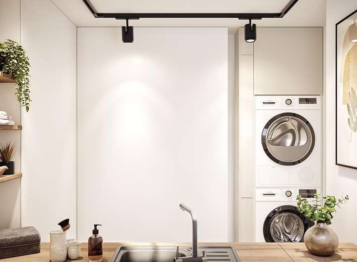 So kann im Technikraum auch Waschen und Trocknen untergebracht
