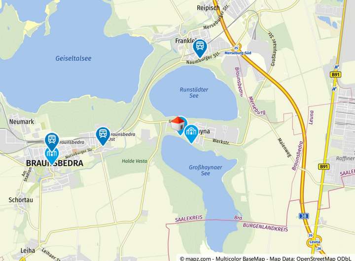 Der Runstedter See liegt lediglich etwa 160 Meter entfernt, und auch der Großkaynaer See ist bequem zu Fuß zu erreichen. Zusätzlich befindet sich der Geiseltalsee – Deutschlands größter künstlicher See – ganz in der Nähe. Ein echtes Highlight für Naturliebhaber, Aktivurlauber und Erholungssuchende. Die Lage verbindet naturnahes Wohnen mit hoher Lebensqualität – ideal für Familien, Paare oder alle, die Ruhe und Natur genießen möchten.