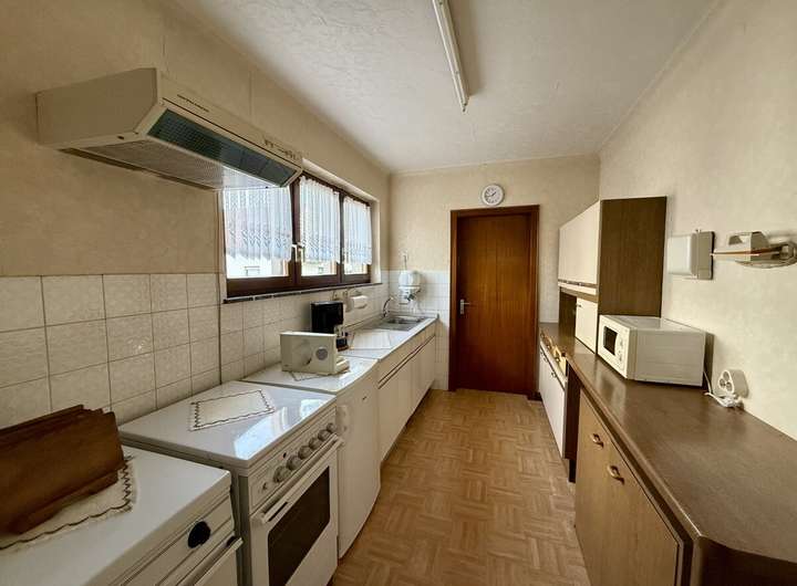 Im Erdgeschoss erwartet Sie ein großzügiger Wohn- und Essbereich mit direktem Zugang zur Terrasse und dem weitläufigen Garten. Die Küche bietet ausreichend Platz und schließt harmonisch an den Wohnbereich an.