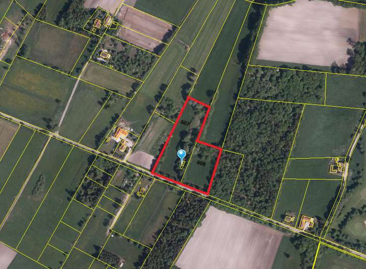Das angrenzende Flurstück Nr. 608 mit ca. 7.220 m² Fläche liegt von der Straße aus betrachtet rechts neben dem bebauten Grundstück. Es ist nahezu quadratisch geschnitten und eignet sich aufgrund seiner Beschaffenheit hervorragend für unterschiedlichste Nutzungskonzepte.