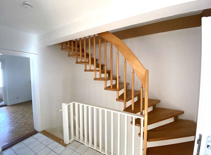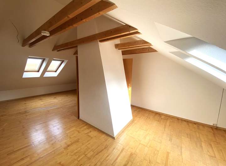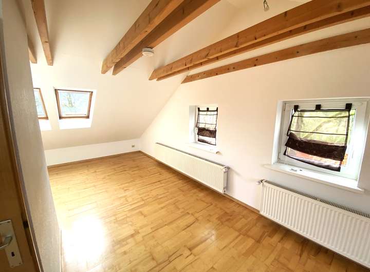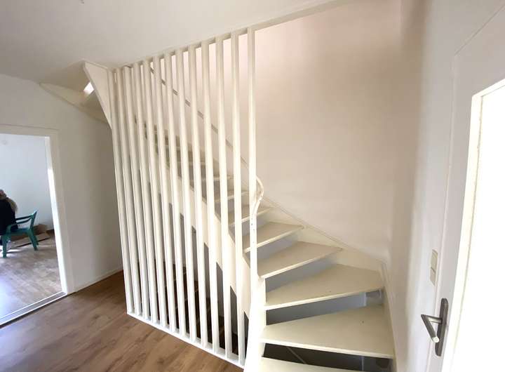 Von innen präsentiert sich das Objekt mit einem klassischen Wohngefühl. Besonders hervorzuheben ist der clever geschnittene Grundriss. Vom einladenden Windfang zweigen ab: das zeitlose Gäste-WC, die renovierte Küche und das helle Wohnzimmer mit bodentiefer Fensterfront. Über eine schlichte Holztreppe gelangt man in das Staffelgeschoss. Hier befinden sich: das geräumige Eltern-Schlafzimmer, die niedlich eingerichteten Kinderzimmer und das Badezimmer.