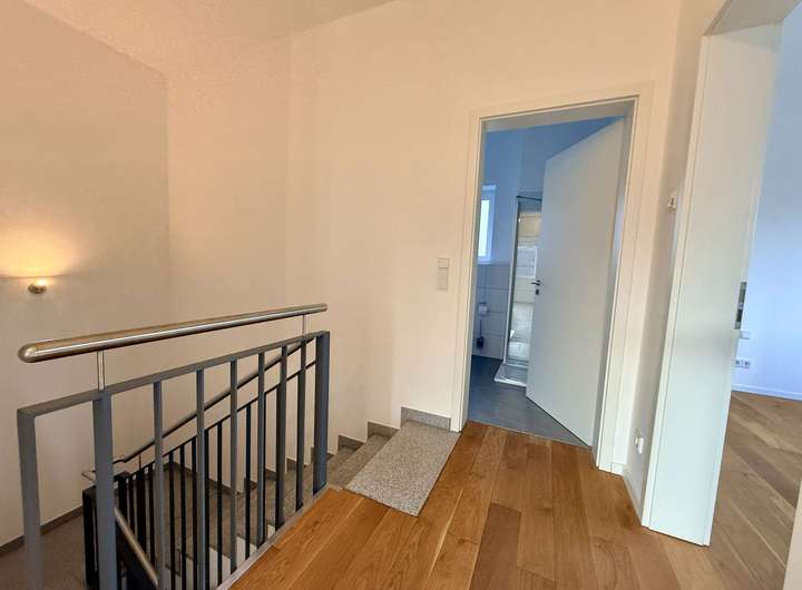 Das Obergeschoss verfügt über insgesamt vier gut geschnittene Zimmer, die sich flexibel als Schlaf-, Kinder- oder Arbeitszimmer nutzen lassen. Das moderne Hauptbad besticht durch hochwertige Materialien und eine zeitgemäße Ausstattung.