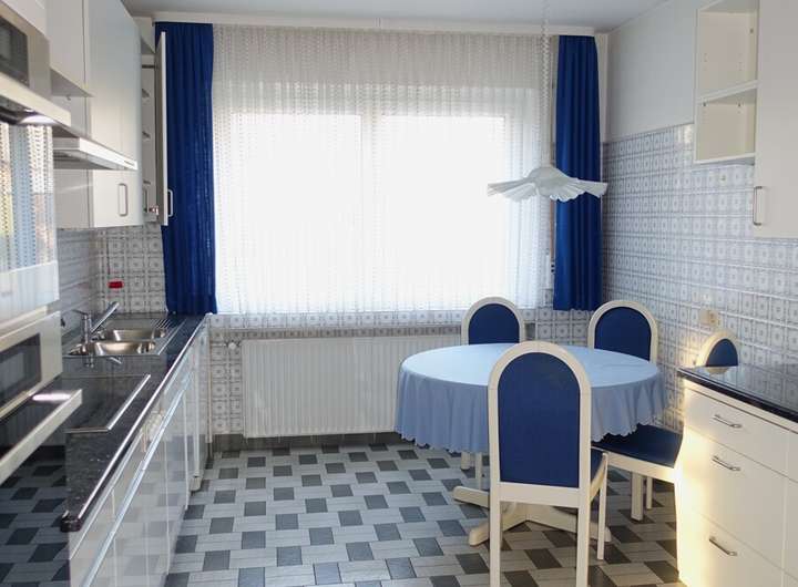 Die Küche ist derzeit geschlossen gestaltet und bietet ausreichend Platz. Auf Wunsch könnte dieser Raum in ein Kinderzimmer umgewandelt werden, da die Immobilie derzeit nur über ein Schlafzimmer verfügt. Gleichzeitig bietet sich das aktuelle Esszimmer perfekt als zukünftige offene Wohnküche an und der Essbereich lässt sich mühelos dort oder auch im Wohnzimmer integrieren.