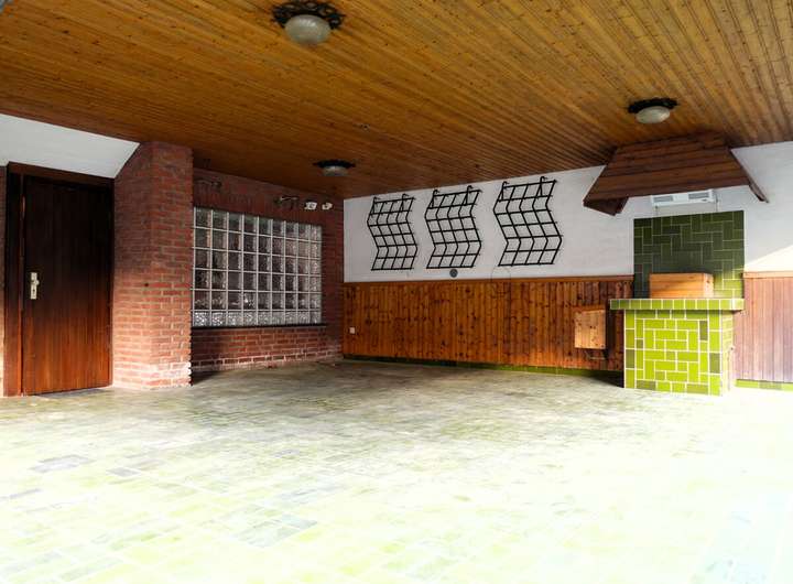 Vom Keller/Souterrain gelangt man direkt auf eine ca. 40m² große, überdachte Terrasse und weiter in den gepflegten Garten - ideal für entspannte Stunden und Feiern im Freien.