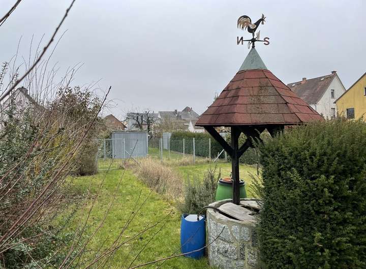 Hinter dem eigentlichen Garten befinden sich über einen schmalen Fußweg noch zwei weitere Wiesenflächen (ca. 403 m²), teilweise mit Obstbäumen, die mit verkauft werden. Diese sind in den Angaben zur Grundstücksfläche bereits enthalten.