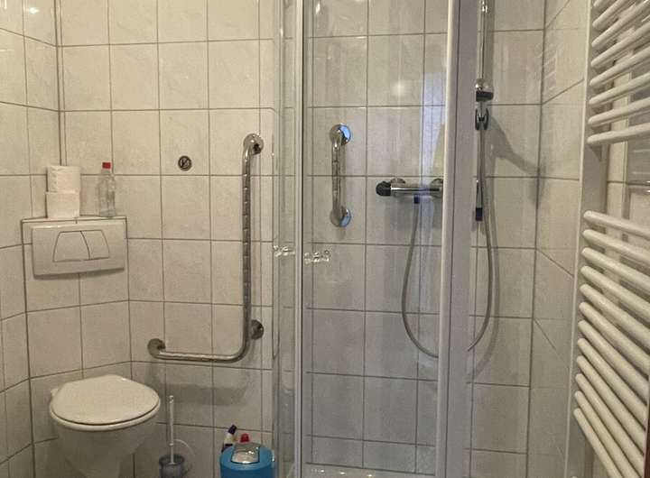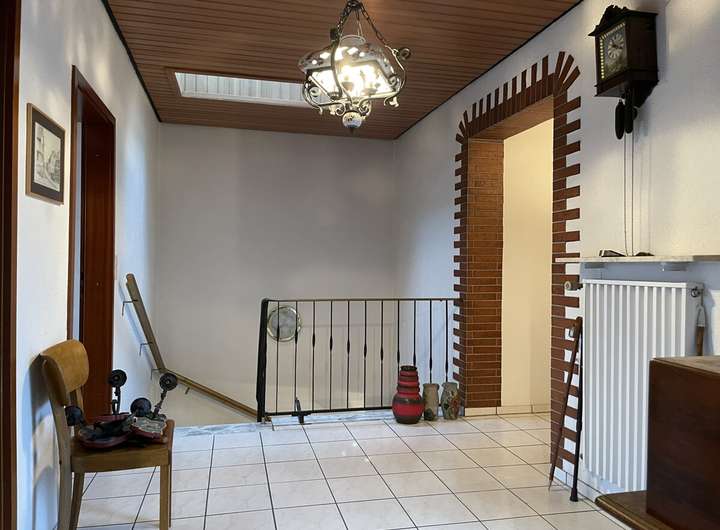 Das hintere Haus bietet viel Raum und eine tolle Aufteilung auf ca. 170 m² Wohnfläche. Sie betreten das Haus und finden zuerst links die Heizung und rechts die Waschküche, die ausreichend groß ist um auch Fahrräder unterzustellen. Ideal, dass es hierzu auch vom Hof aus einen separaten Zugang gibt. Im Erdgeschoss befindet sich dann noch das modernisierte Duschbad. Weiter geht es in die große Diele mit Garderobe, bevor Sie in die Küche und den Wohnbereich gelangen.