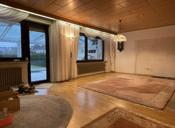 Der Wohnbereich ist großzügig und bietet mit großen Fensterflächen den Blick durch den Wintergarten ins Grüne. Der Wintergarten ist beheizbar und über die gesamte Hausbreite angelegt. Dieser Bereich und der anschließende Garten sind hier sicherlich die Favoriten auf Ihren künftigen Lieblingsplatz. In direkter Nachbarschaft sind nur Gärten und Grünflächen vorhanden.