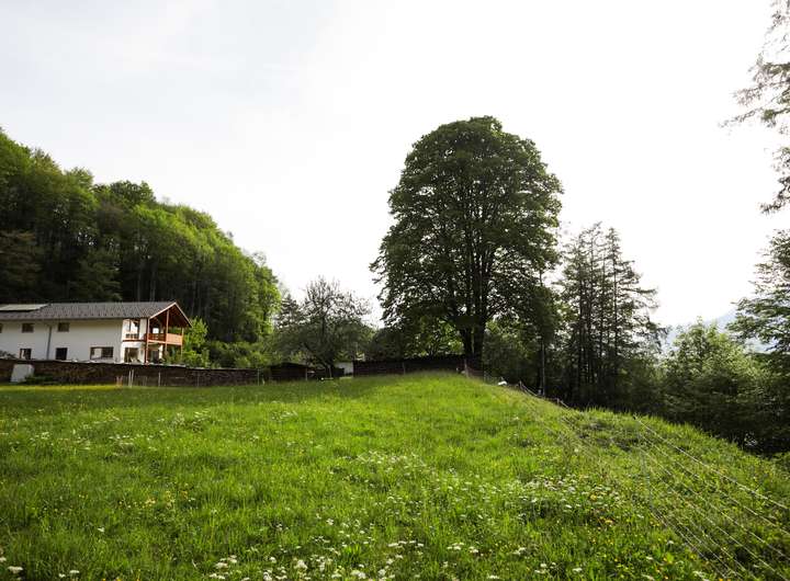 Das idylische Grundstück liegt leicht erhöht in der Mühlau, eingebettet in die Natur.