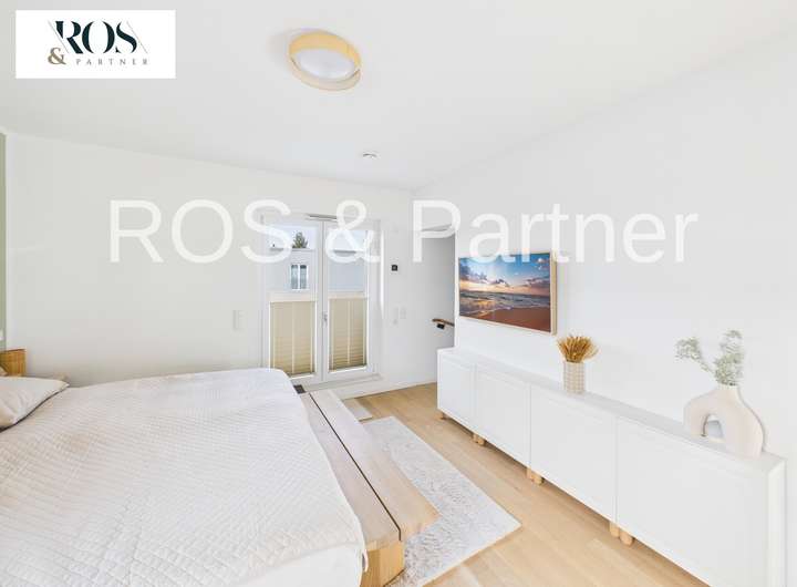 Diese außergewöhnliche Triplex-Wohnung mit Reihenhauscharme, erbaut im Jahr 2021, erstreckt sich über drei Etagen und bietet ca. 158 m² Wohnfläche, verteilt auf 5 Zimmer, darunter 4 Schlafzimmer sowie jeweils ein Bad auf jeder Ebene. Das Wohnkonzept verbindet die Struktur und Behaglichkeit eines Reihenhauses mit der besonderen architektonischen Form einer Triplex-Wohnung, die deutlich mehr Privatsphäre, Großzügigkeit und Wohnqualität bietet als klassische Reihenhauslösungen. Die Ausstattung wurde umfassend und hochwertig aufgewertet. Dazu zählen individuelle Sonderausstattungen, eine moderne Premiumküche, elektrische Dachmarkisen, ein eleganter Innenkamin, ein komfortables Smarthome-System sowie eine automatische Gartenbewässerung per App über Bluetooth. Hochwertiges Echtholz-Parkett, großzügige Fensterflächen und ein helles, zeitgemäßes Design prägen das Ambiente aller Räume. Die gesamte Wohnung verfügt über Fußbodenheizung, die für ein besonders angenehmes Wohnklima sorgt. Das Smarthome-System ermöglicht die bequeme Steuerung von Außensonnenschutz, Fußbodenheizung, Markisen und Beleuchtung. Sämtliche Fenster sind mit automatischen Außensonnensegeln bzw. Außenrollos ausgestattet, die ebenfalls per App bedienbar sind. Zur weiteren Ausstattung gehört eine Türkamera im Erdgeschoss; im Erdgeschoss und im obersten Geschoss befinden sich zudem jeweils Bildschirme mit Appfunktion für komfortable Kontrolle und Überwachung. Der private Garten bietet eine angenehme Rückzugsfläche zur Entspannung und ist dank der App-gesteuerten Bewässerung besonders pflegeleicht. Zur Wohnung gehören zwei XXL-Tiefgaragenstellplätze, die separat erworben werden können. Es handelt sich dabei um besonders großzügige Plätze, die zu den größten der gesamten Anlage zählen und komfortabel nebeneinander in einer Ecke nahe dem Garageneingang liegen.