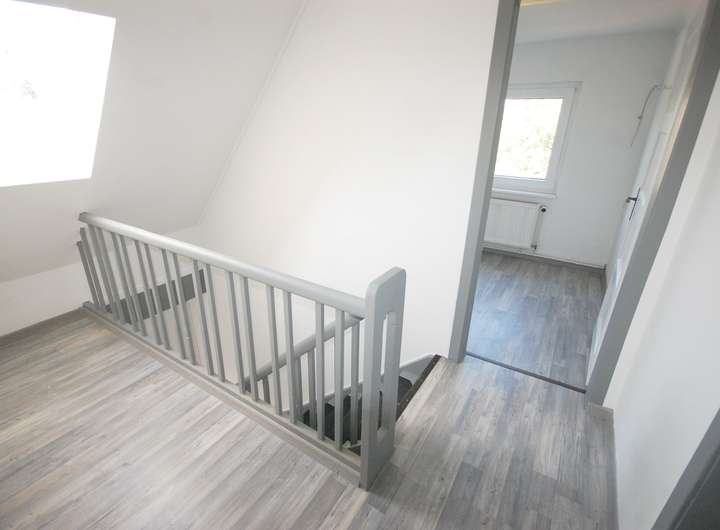 Über eine Treppe im Flur erreichen Sie das Obergeschoss, wo sich drei Schlafzimmer befinden, die ideal als Schlafzimmer oder als Büro genutzt werden können. Ein Teilkeller mit einer Größe von ca. 19,30 m² ist ebenfalls über den Flur im Erdgeschoss erreichbar und bietet zusätzlichen Stauraum.