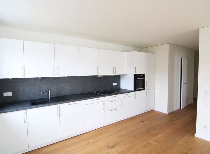 Die sehr elegante Wohnung liegt im lichtdurchfluteten 1.OG des Hauses (mit Aufzug) und zeigt einen gelungenen, modernen Grundriss. Eine Grundrissskizze (ohne Gewähr für Richtigkeit) haben wir diesem Exposé bereits beigefügt, damit Sie eine erste Orientierung haben. Die hochwertigen Ausstattungen überzeugen: das Echtholzparkett Eiche hell/Landhausdiele schafft ein wohnliches Ambiente, die gespachtelten Wände bringen Eleganz in die Wohnung. Sehr sehenswert ist die moderne Einbauküche, die bereits komplett ausgestattet ist und damit auch bereits über eine große Kühl-Gefrierkombination und einen Geschirrspüler verfügt. Das Duschbadezimmer (mit großer Dusche!) zeigt moderne Fliesungen und hübsche Accessoires. Die Wohnung ist sehr hell und auch sonnig. Vom geräumigen Balkon haben Sie einen schönen Blick ins Grüne.