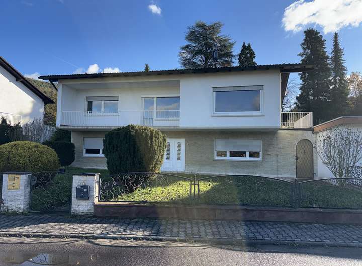 Willkommen in Ihrem neuen, freistehenden Zuhause in ruhiger und sonniger Lage. Das freundliche Haus überzeugt mit einer gepflegten Fassade und bietet dank seiner erhöhten Position einen herrlichen Blick auf die umliegende, teils bewaldete Hügellandschaft.