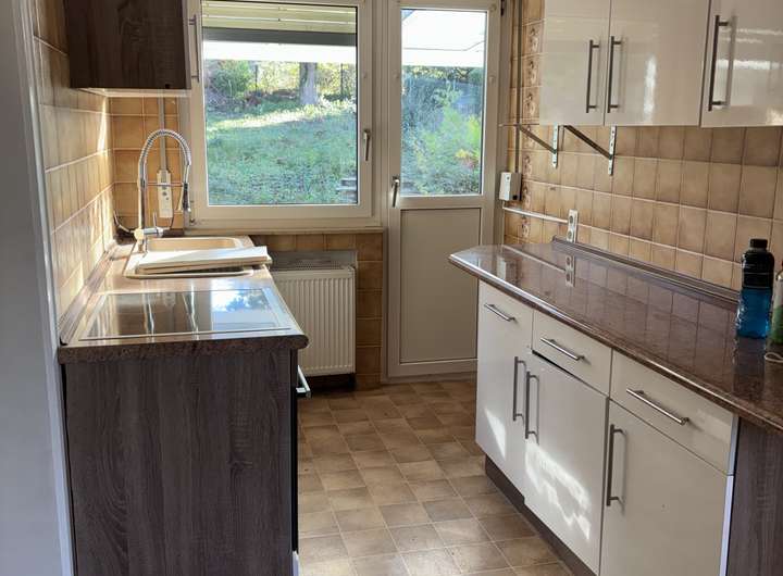 Die Küche bietet direkten Zugang zum Außenbereich und ist funktional gestaltet.