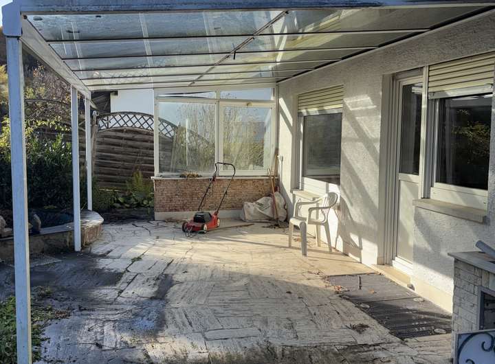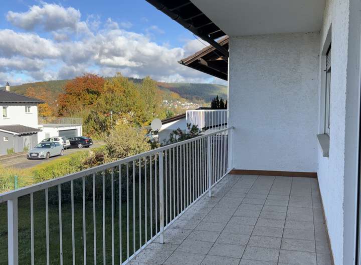 Ein besonderes Highlight ist der großzügige Balkon im Obergeschoss mit schönem Ausblick. Im Erdgeschoss lädt eine überdachte Terrasse zu entspannten Stunden im Freien ein.