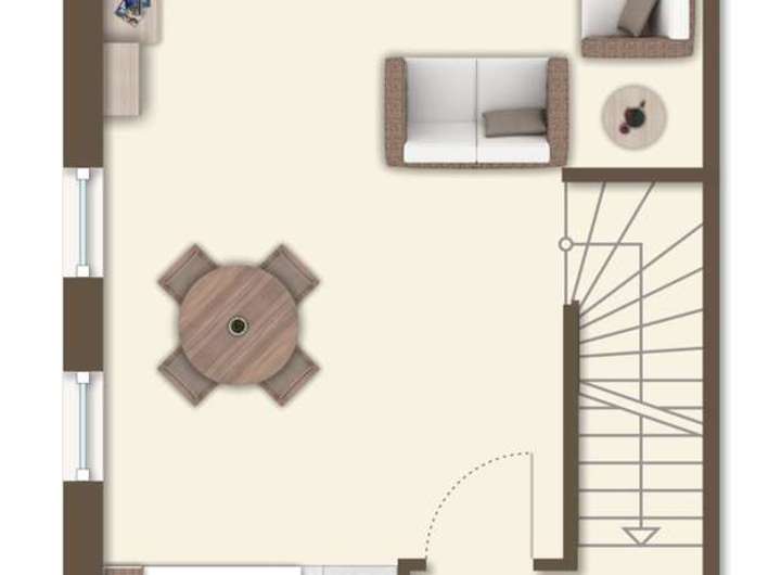 Vom Eingang aus führt eine Treppe in das Untergeschoss.