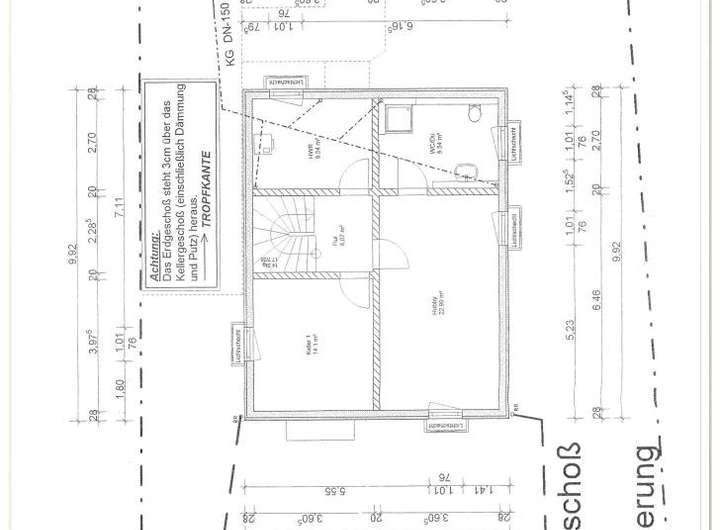 Voll-Unterkellerung in wasserdichter Ausführung (sog. 'Weiße Wanne');