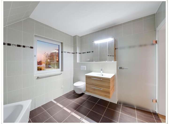 Ggeschmackvoll ausgestattete Bäder: Bad im EG mit bodengleicher Dusche, Bad im DG mit Wanne;