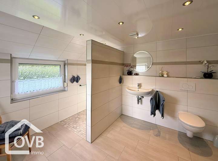 Im Erdgeschoss befinden sich alle wichtigen Bereiche für komfortables Wohnen auf einer Ebene. Das großzügige Doppelwohnzimmer bietet viel Platz für gemütliche Stunden, während die Küche mit dem angrenzenden Essbereich den Mittelpunkt des täglichen Lebens bildet. Ein großes Schlafzimmer sowie das 2021 komplett erneuerte Badezimmer mit bodengleicher Dusche und Fußbodenerwärmung ergänzen das Angebot des Erdgeschosses optimal.