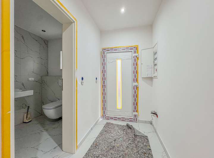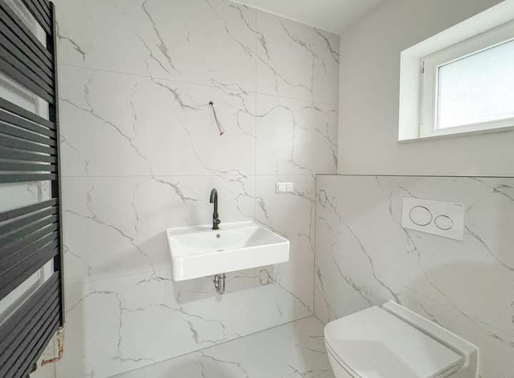 Das Erdgeschoss empfängt Sie mit großzügigen, hellen Räumen und einem eleganten Fliesenboden in Marmoroptik, der dem Wohnbereich eine zeitlose und hochwertige Ausstrahlung verleiht. Hier befindet sich auch das moderne Gäste WC. Die Raumaufteilung ist durchdacht und schafft ein angenehmes Wohngefühl mit vielen Gestaltungsmöglichkeiten.