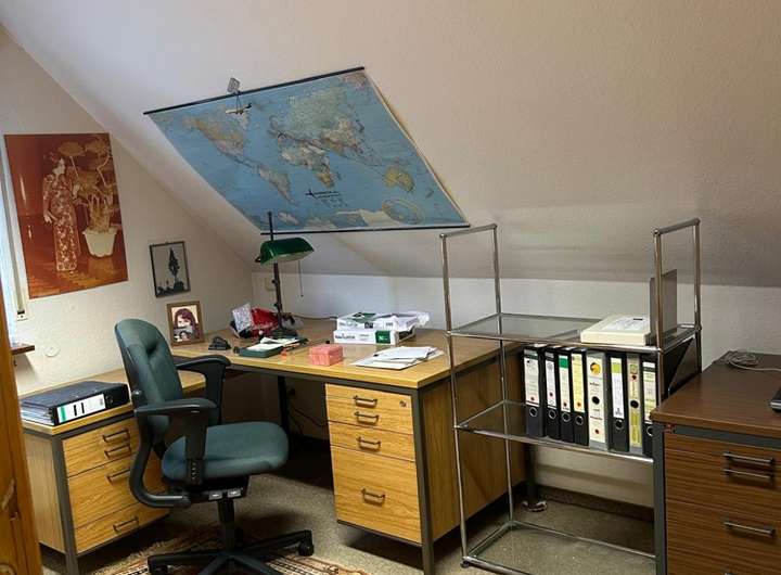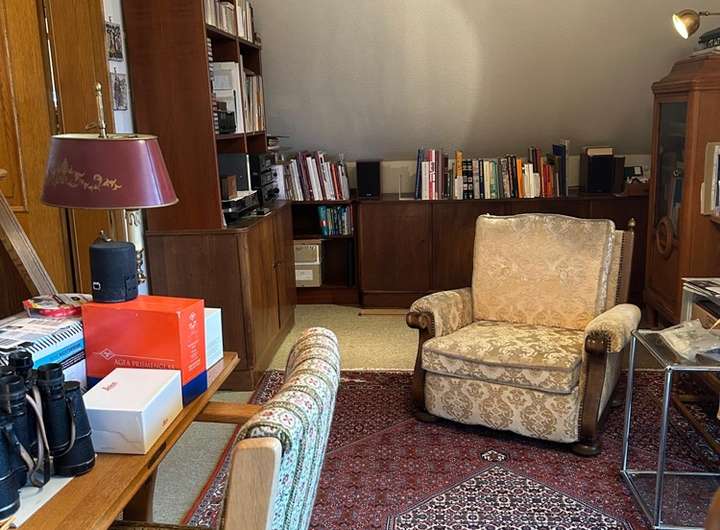 Das Obergeschoss besteht aus einem Galerieraum und weiteren Räumen, die sich hervorragend als Arbeit-oder Atelierbereich eignen. Eine gewerbliche Nutzung durch die Stadt Frankfurt liegt offiziell vor. Ebenfalls befindet sich hier noch ein weiteres Badezimmer.