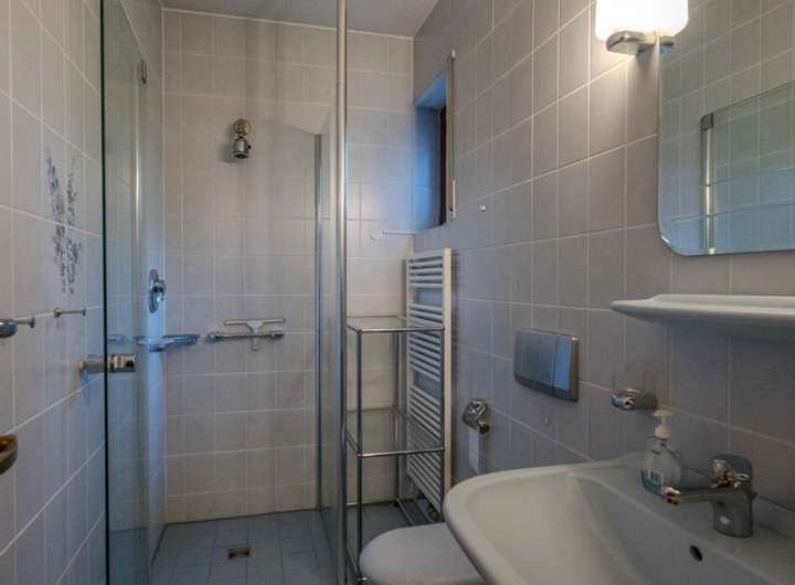 Der komplett geflieste Keller, den Sie von Flur aus über eine Holztreppe erreichen verfügt über reichlich Stauraum, eine Sauna und eine Einliegerwohnung mit Duschbad und separatem Zugang.