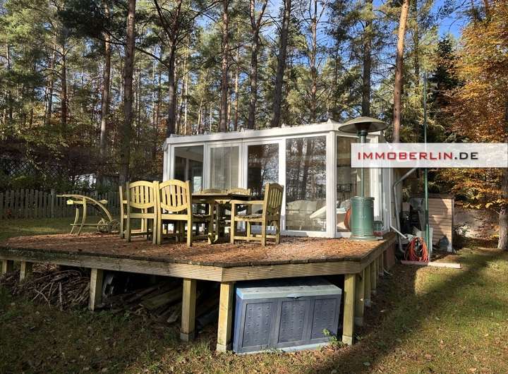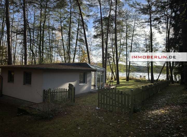 IMMOBERLIN.DE - Traumhaftes Wassergrundstück mit Wochenendbungalow & Boot in herrlicher Naturlage