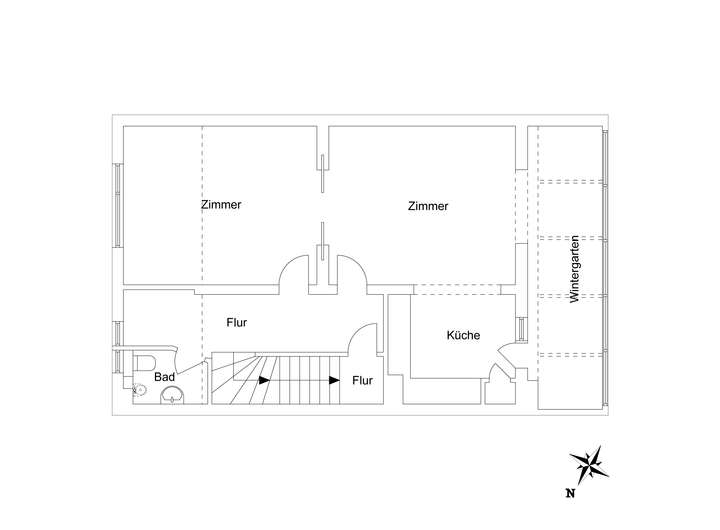 Im Erdgeschoss befindet sich die erste Wohneinheit bestehend aus einem Schlafzimmer, großer Diele, geräumiger Einbauküche, einem Wohnzimmer Badezimmer sowie einem Wintergarten mit Ausrichtung und Zugang zum Garten. Über das Treppenhaus gelangt man zur zweiten Wohneinheit mit einem großen Wohn- und Essbereich, offner Einbauküche, Wintergarten, insgesamt drei Badezimmern und drei Schlafzimmer. Der großzügige Wohn- und Essbereich im ersten Obergeschoss ist hier das Kernstück des Hauses und erhält über die großen Fensterfronten des Wintergartens viel Tageslicht. Der Blick in den idyllischen Garten ist ein weiteres Highlight. Ferner sind die beiden Räume funktional mit einer Original-Schiebetür abzutrennen, um bei Bedarf mehr Privatsphäre zu schaffen.