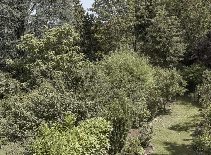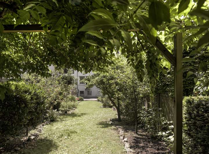 Behagliche Intimität bietet der verwunschene Garten mit viel Grün und seltenen Pflanzen. Mit einer Fläche von 316 m² bietet das Grundstück ausreichend Platz zum Wohlfühlen und Spielen für die gesamte Familie.