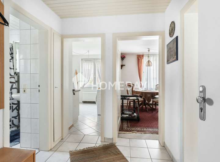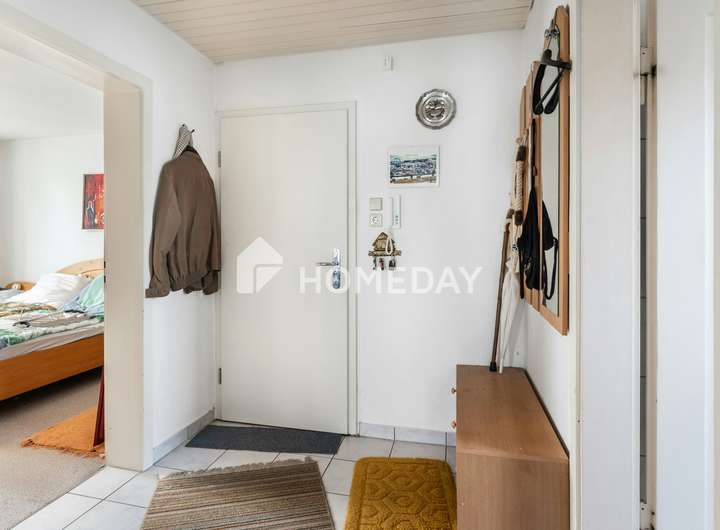 Die gepflegte Zwei-Zimmer-Wohnung im Hochparterre überzeugt durch einen kompakten, sinnvoll gestalteten Grundriss und eine praktische Aufteilung, die den Alltag angenehm erleichtert. Auf rund 51 m² verteilen sich Wohnen, Kochen und Schlafen in einer angenehmen Raumstruktur, die sowohl Singles als auch Paaren ideale Voraussetzungen bietet.