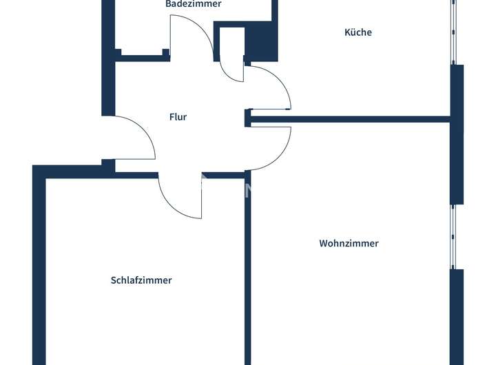 Der zentrale Flur bildet das verbindende Element der Wohnung und erschließt sämtliche Räume. Die separate Küche ist mit einer Einbauküche ausgestattet, die in der Einheit verbleibt. Das Tageslichtbad verfügt über eine ebenerdige Dusche und präsentiert sich funktional und pflegeleicht. Ergänzend steht eine kleine Vorratskammer bzw. Nische zur Verfügung, die sich hervorragend als Einbaugarderobe oder zusätzlicher Stauraum eignet.
