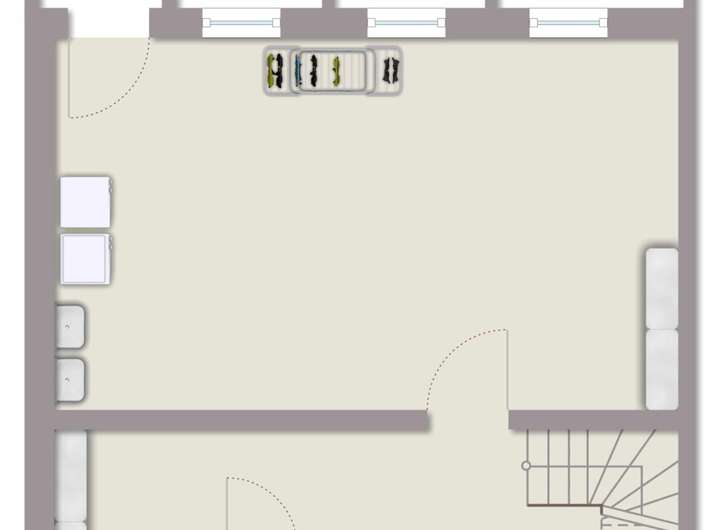 Die Räumlichkeiten im Kellergeschoss teilen sich in einen Heizungsraum, einen Wasch- und Trockenraum sowie einen weiteren Raum auf.