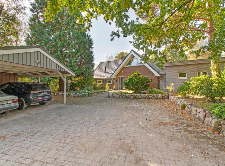 Das Haus liegt in einer der grünsten und zugleich charmantesten Gegenden Hamburgs, am Rande des beliebten Stadtteils Duvenstedt, eingebettet zwischen dem Wittmoor und dem Tangstedter Forst.