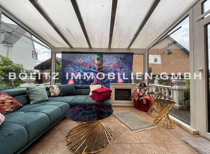 Bereits beim Betreten des Hauses über die Hauseingangstür empfängt Sie der Flur, von dem aus eine Treppe ins Dachgeschoss führt. Folgen Sie dem Flur weiter, gelangen Sie in den Wohnbereich, der mit einem Kamin für behagliche Stunden sorgt. Angrenzend befindet sich ein beheizter Wintergarten, der auch an kühleren Tagen als lichtdurchfluteter Wohnraum genutzt werden kann. Vom Wohnzimmer geht zudem ein weiteres Zimmer ab, das sich flexibel als Arbeits-, Gäste- oder Kinderzimmer nutzen lässt.