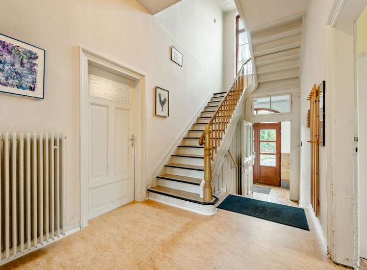 - offenes Treppenhaus mit Holztreppe und viel Licht