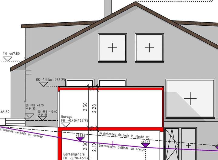 Das Grundstück überzeugt mit einer angenehmen, leichten Hanglage, die architektonische Vorteile bietet: Der Keller kann ideal zum Garten hin geöffnet werden und schafft helle, großzügige Räume auf der unteren Ebene.