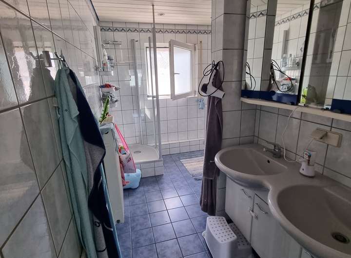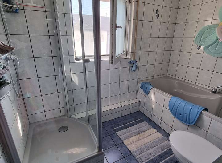 Sowohl im 1. OG wie auch im 2. OG verfügt das Haus über einen Westbalkon. Der durchgehend geflieste Keller bietet nochmals einen großen Raum für ihre Hobbys (26m², nicht in Wohnfläche mit eingerechnet) sowie zusätzliche Abstellmöglichkeiten für Wa-Ma etc. .