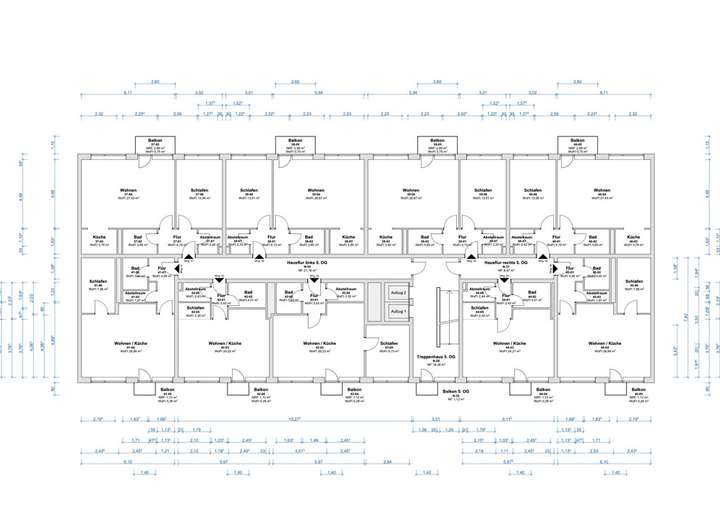 - Je Wohnung eine Einbauküche, Bad und Balkon vorhanden